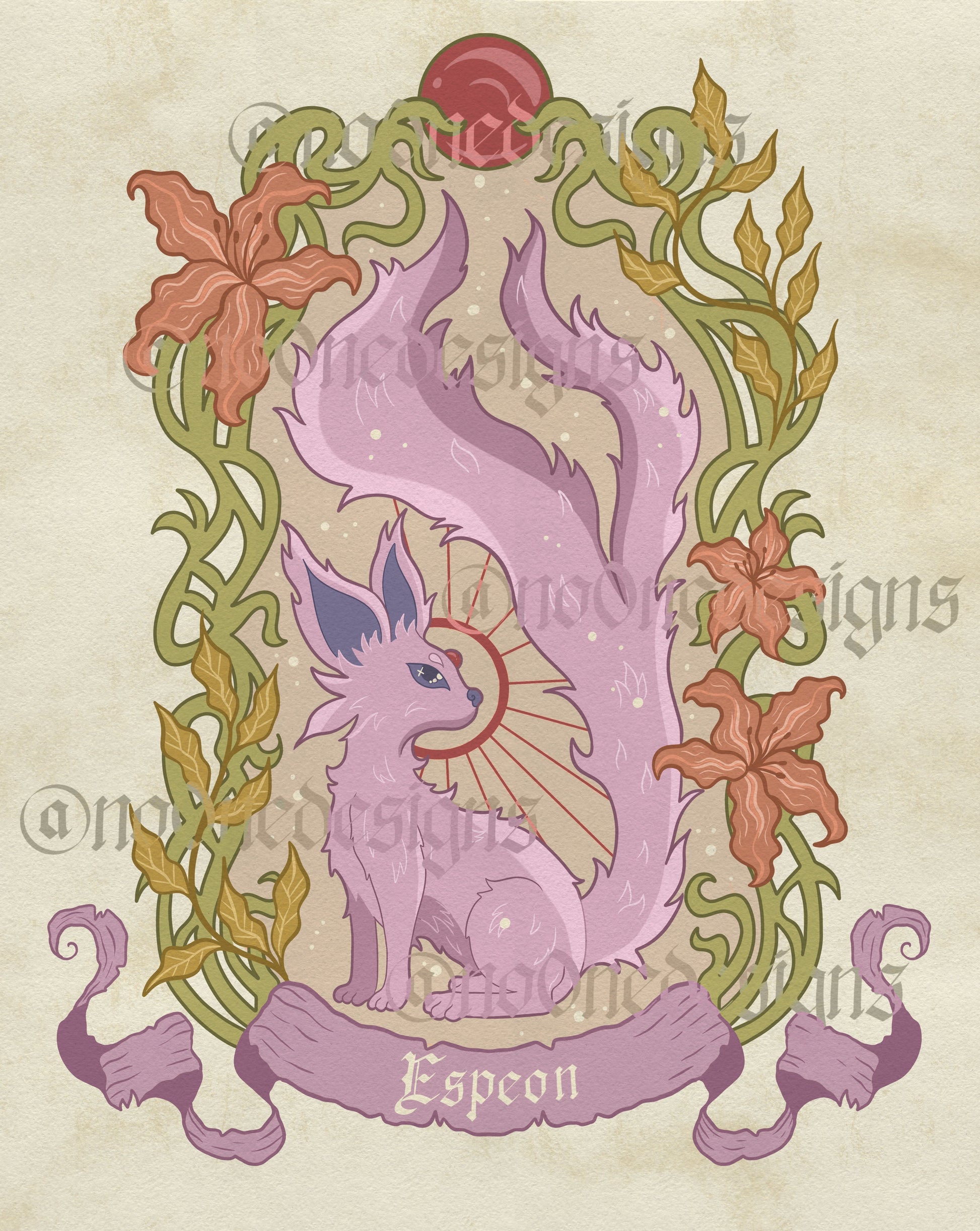 Nouveau-Style Fantasy Fox PKM Art Prints